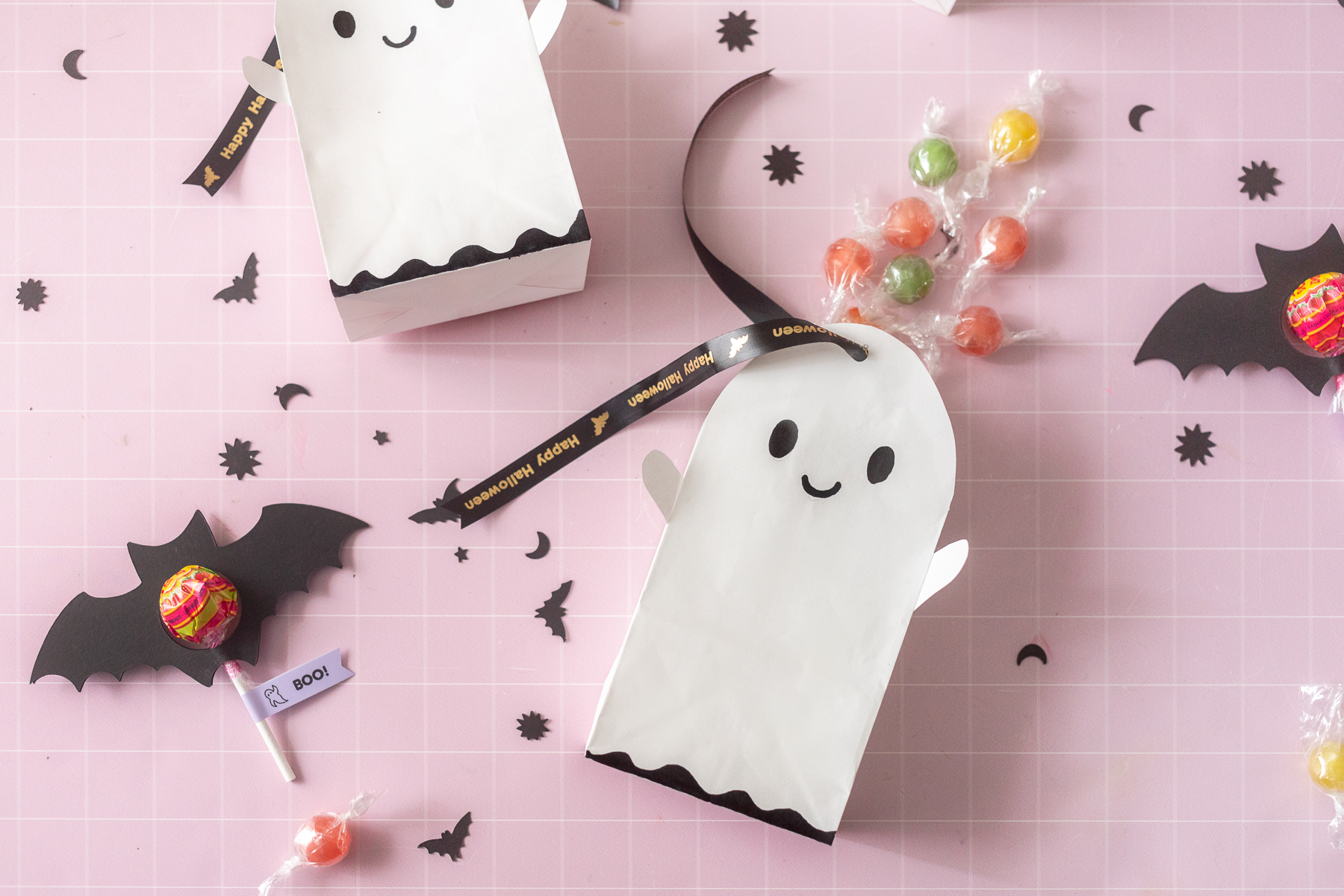 Wir starten schon gleich mit zwei Ideen für Halloween-Süßigkeiten. Fledermaus-Lollis (mit kostenloser Vorlage für euch!) und kleine Gespenster-Süßigkeiten-Tütchen als kreative Halloween-Idee. Perfekte Giveaways für kleine Besucher vor der Haustür, als Mitbringsel oder Deko für die Halloween-Party – schnell gemacht und richtig süß!