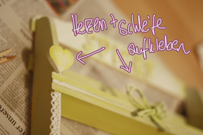 Herzen und Schleife werden als nächstes aufgeklebt.