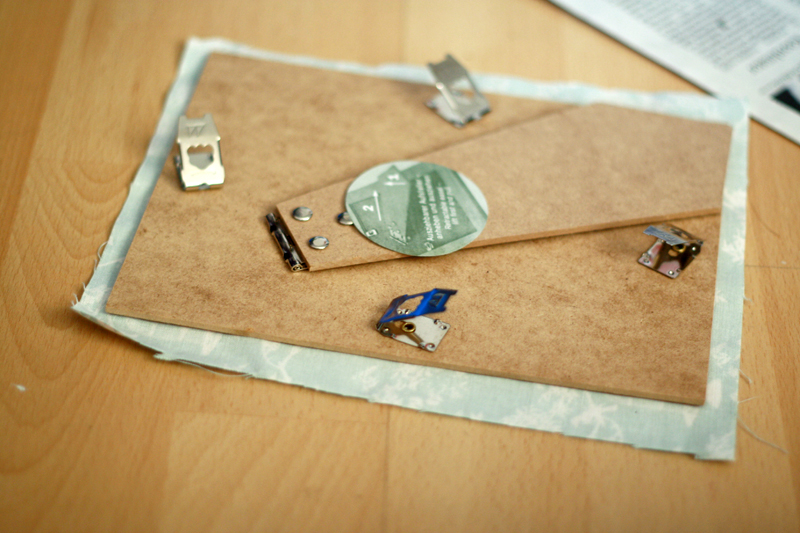- Dekostoff. Vielleicht erkennt ihr meinen Dekostoff wieder – genau, den habe ich nämlich schon benutzt, als ich die Memotafel gebastelt habe. Der Stoff ist einfach so hübsch und das zarte Vogelkäfig-Muster passt super zum Barock-Bilderrahmen. Wer nicht weiß, woher er solche Stoffe bekommen soll: Dieser Stoff hier ist von Tilda und ich habe ihn aus dem Listmann, einem mehrstöckigen Bastelladen in Mainz. Wenn ihr keinen großen Bastelladen bei euch in der Nähe habt, schaut doch mal bei Karstadt nach, die haben auch immer eine Stoff- und Kurzwarenabteilung. Und wenn ihr ganz und gar verzweifelt seid und nichts findet, bestellt eure Stoffe bei Amazon. Sucht einfach nach „Stoffpaket“.